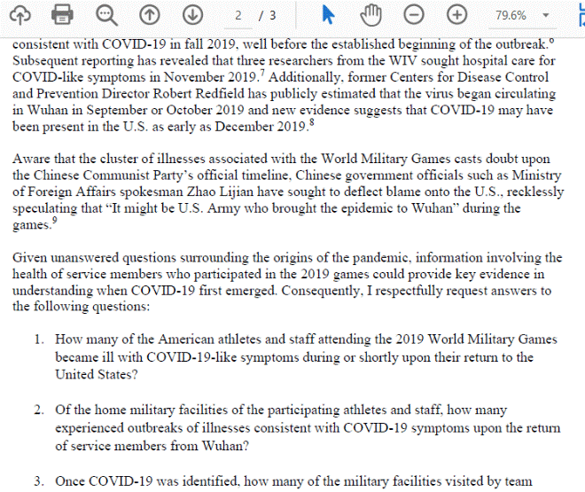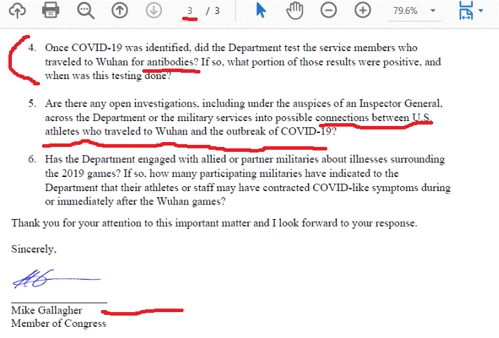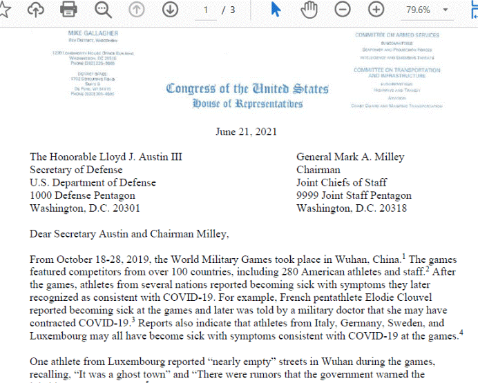 Keep Representative Mike Gallagher's request to Generals Milley and Austin in 2021 top priority regarding the origin of SARS-CoV-2.