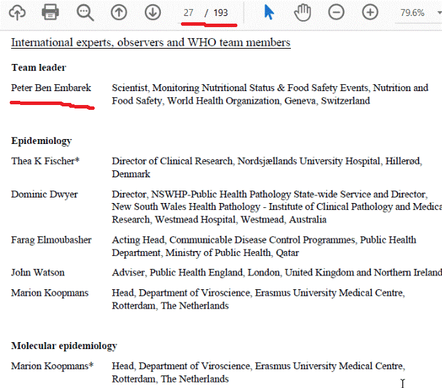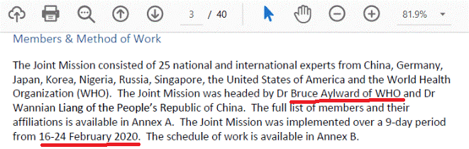 (1) the (Aylward) WHO’s ‘report effusively praised the government’s actions’