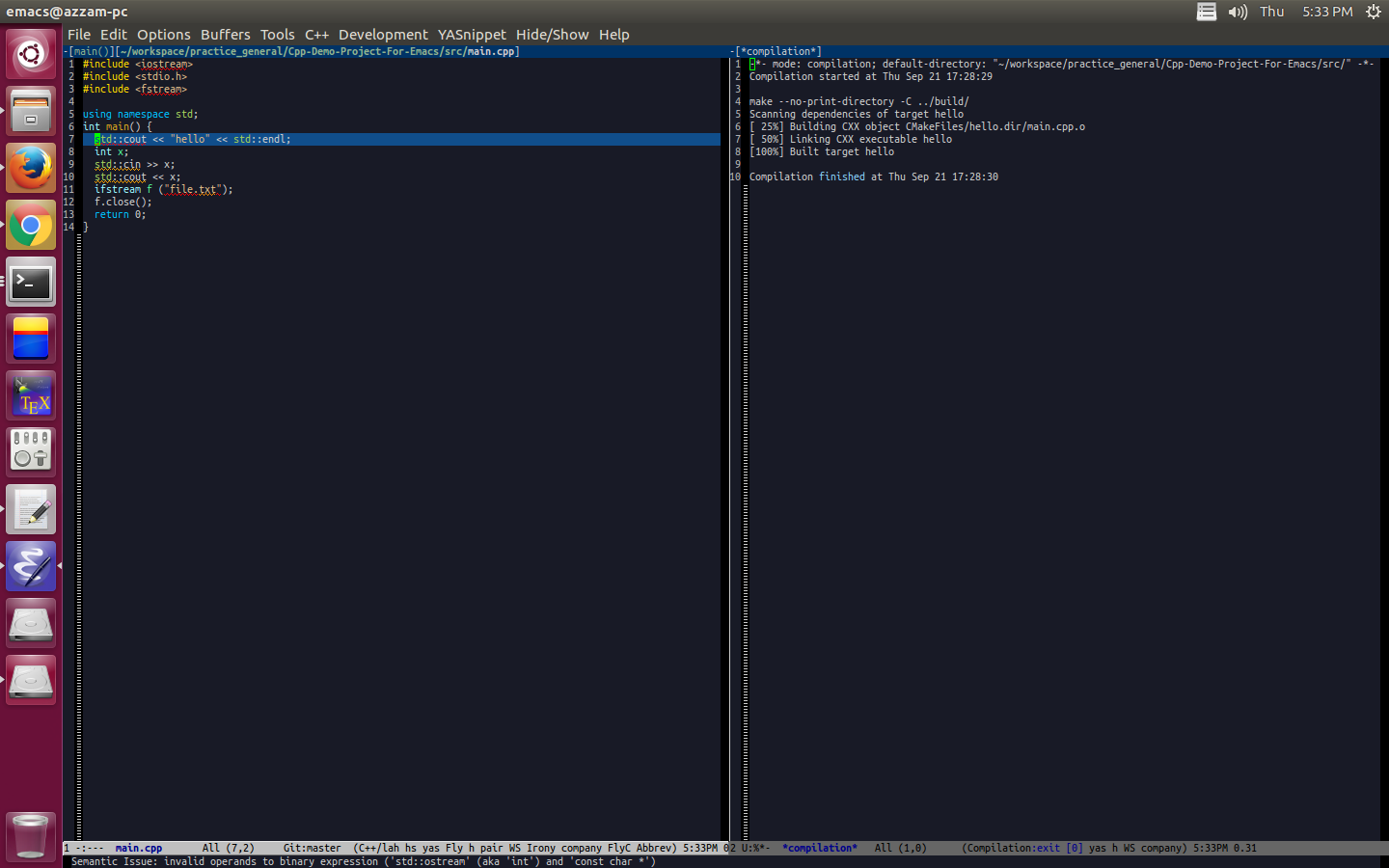 After a using CLion for nearly a year I was not really happy with it. I missed Emacs, so I went back and completely redid the Emacs configuration. I've shared the updated results http://nilsdeppe.com/posts/....