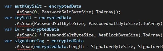 Array.Copy(encryptedData, 0, authKeySalt, 0, PasswordSaltByteSize);