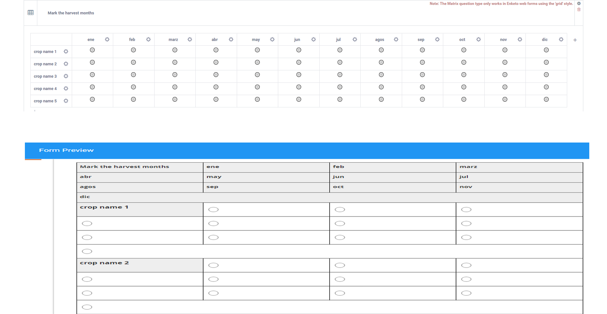 In rows i have crops names and in the columns i have months, so i want that the